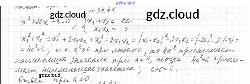 §34. Теорема Виета Ответы к Главе 6. Квадратные уравнения по Алгебре 8 класс Учебник Мерзляк Алгоритм успеха Углубленный уровень Вентана-граф