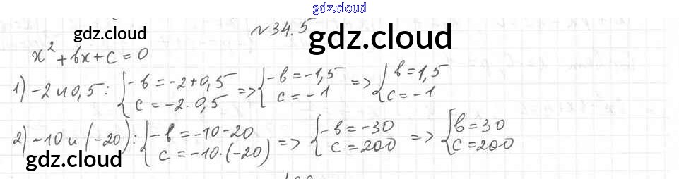 §34. Теорема Виета Ответы к Главе 6. Квадратные уравнения по Алгебре 8 класс Учебник Мерзляк Алгоритм успеха Углубленный уровень Вентана-граф