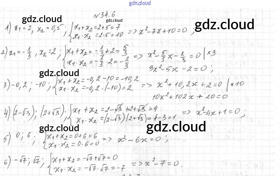 §34. Теорема Виета Ответы к Главе 6. Квадратные уравнения по Алгебре 8 класс Учебник Мерзляк Алгоритм успеха Углубленный уровень Вентана-граф