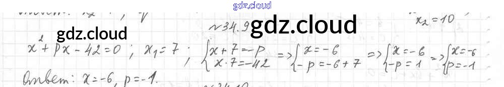 §34. Теорема Виета Ответы к Главе 6. Квадратные уравнения по Алгебре 8 класс Учебник Мерзляк Алгоритм успеха Углубленный уровень Вентана-граф