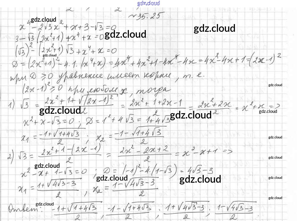 §35. Квадратный трехчлен Ответы к Главе 6. Квадратные уравнения по Алгебре 8 класс Учебник Мерзляк Алгоритм успеха Углубленный уровень Вентана-граф