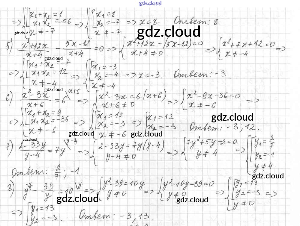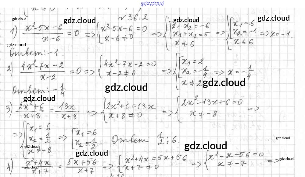 §36. Решение уравнений, сводящихся к квадратным уравнениям Ответы к Главе 6. Квадратные уравнения по Алгебре 8 класс Учебник Мерзляк Алгоритм успеха Углубленный уровень Вентана-граф