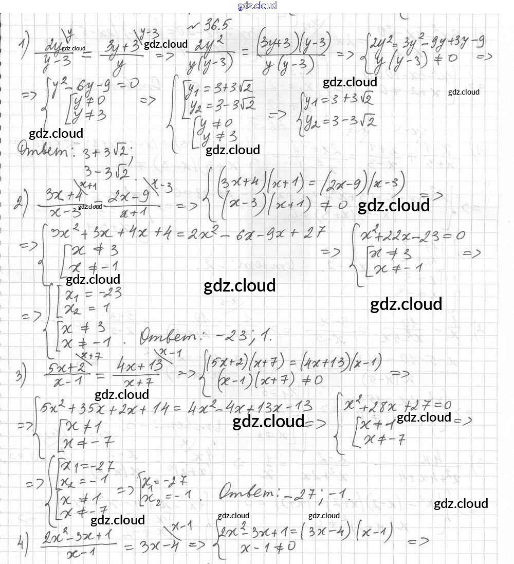 §36. Решение уравнений, сводящихся к квадратным уравнениям Ответы к Главе 6. Квадратные уравнения по Алгебре 8 класс Учебник Мерзляк Алгоритм успеха Углубленный уровень Вентана-граф