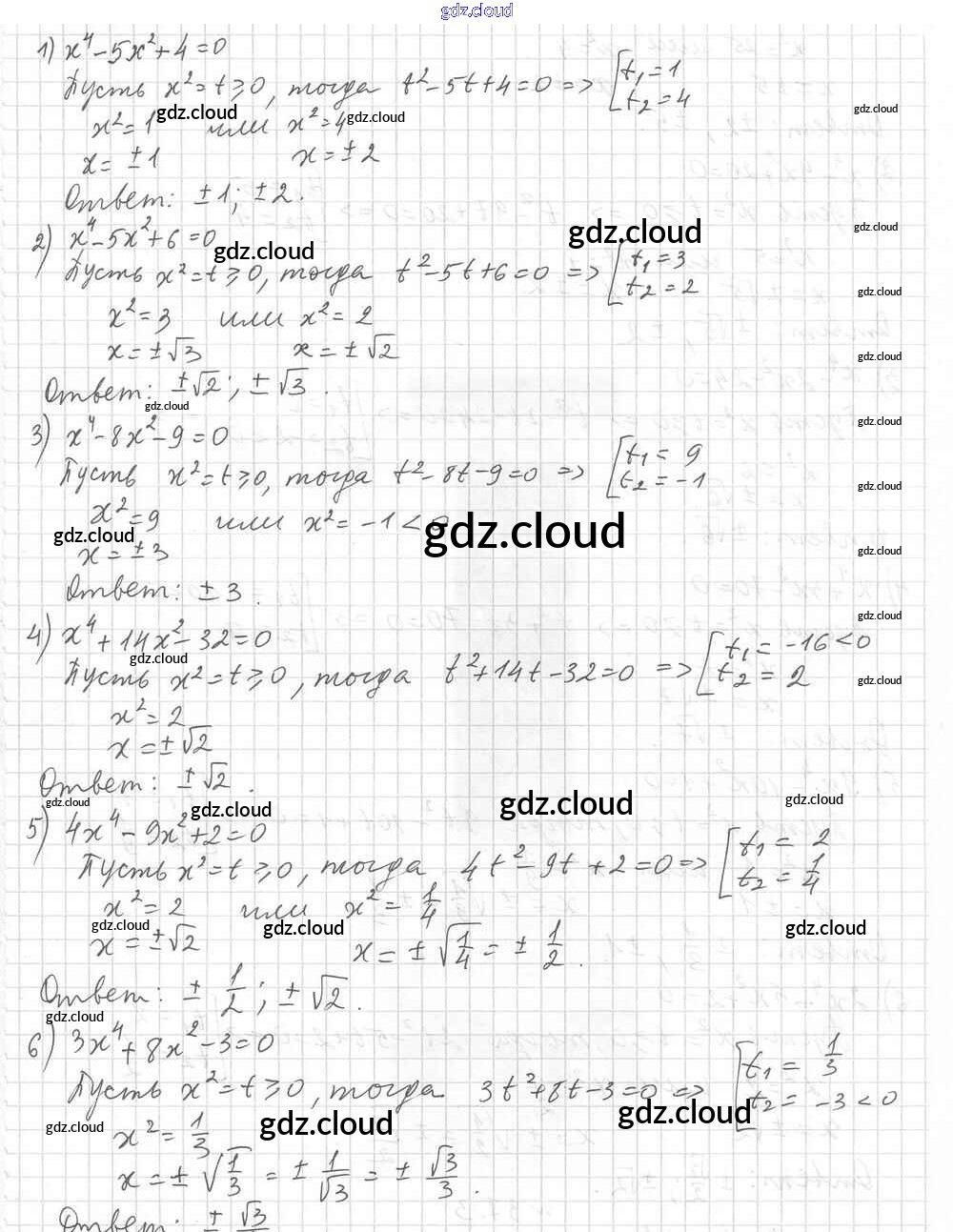 §37. Решение уравнений методом замены переменной Ответы к Главе 6. Квадратные уравнения по Алгебре 8 класс Учебник Мерзляк Алгоритм успеха Углубленный уровень Вентана-граф