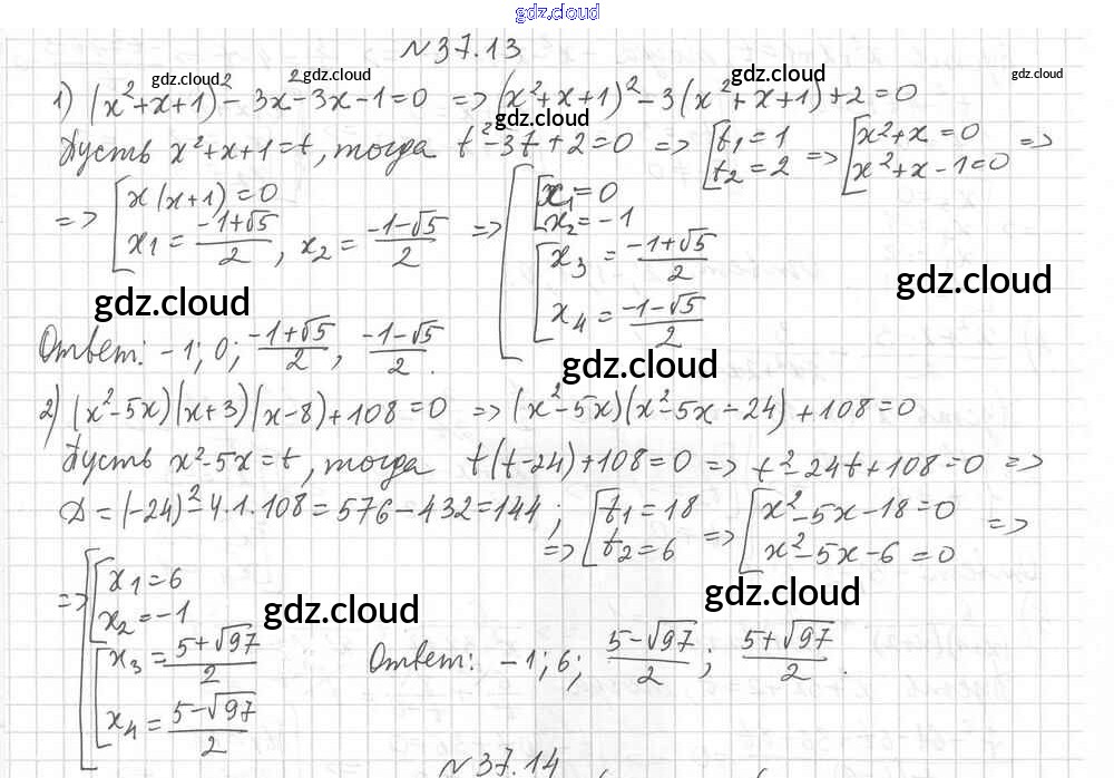 §37. Решение уравнений методом замены переменной Ответы к Главе 6. Квадратные уравнения по Алгебре 8 класс Учебник Мерзляк Алгоритм успеха Углубленный уровень Вентана-граф