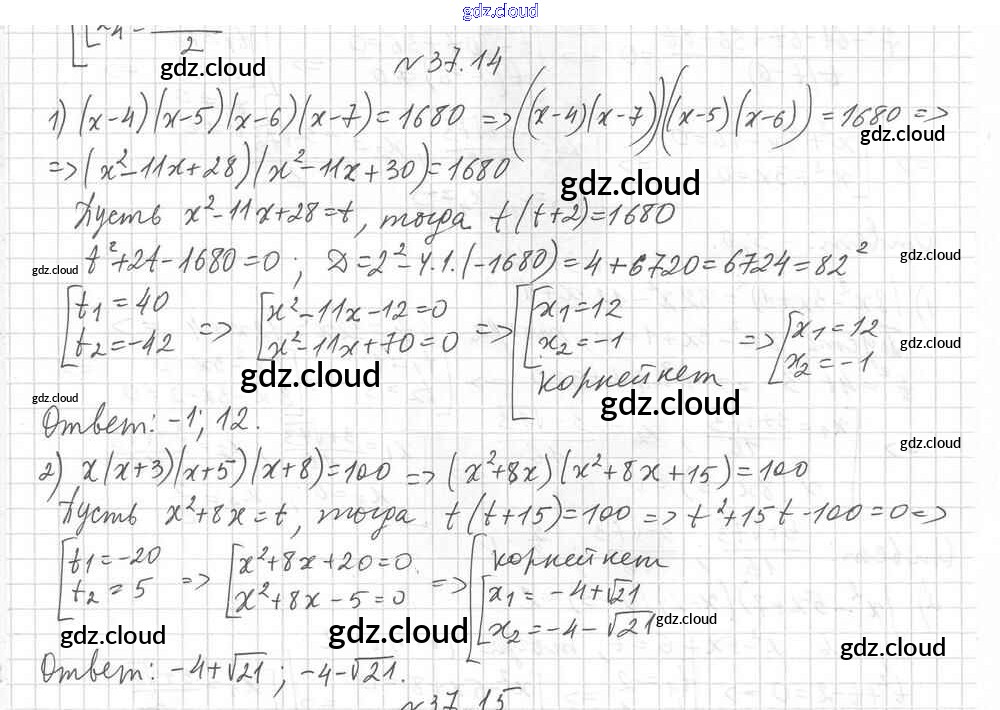 §37. Решение уравнений методом замены переменной Ответы к Главе 6. Квадратные уравнения по Алгебре 8 класс Учебник Мерзляк Алгоритм успеха Углубленный уровень Вентана-граф