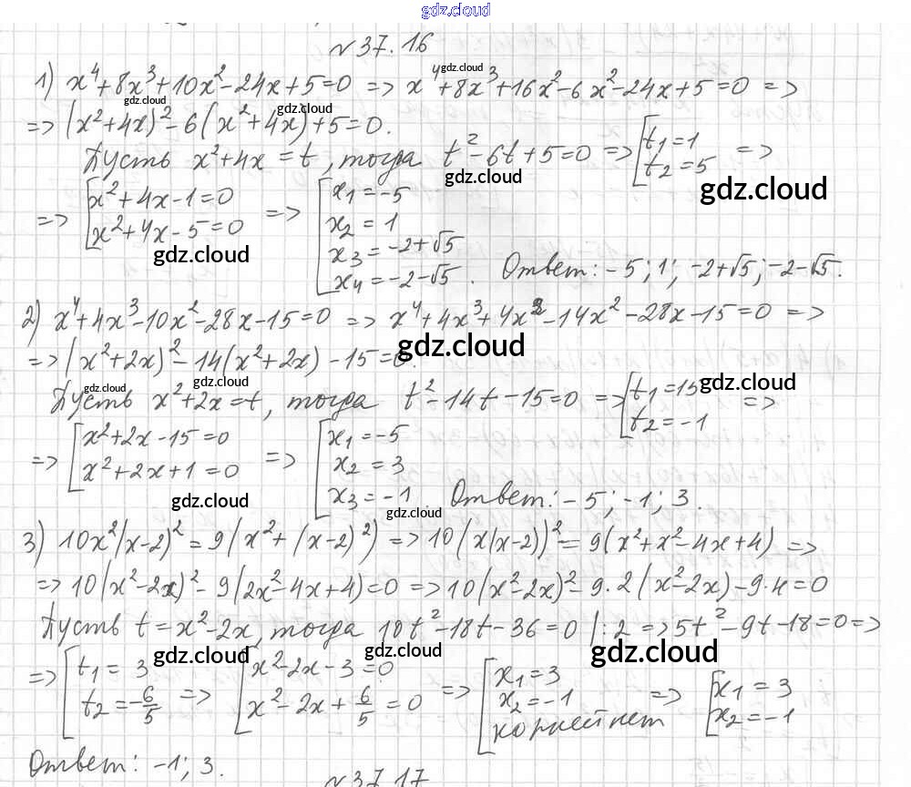 §37. Решение уравнений методом замены переменной Ответы к Главе 6. Квадратные уравнения по Алгебре 8 класс Учебник Мерзляк Алгоритм успеха Углубленный уровень Вентана-граф
