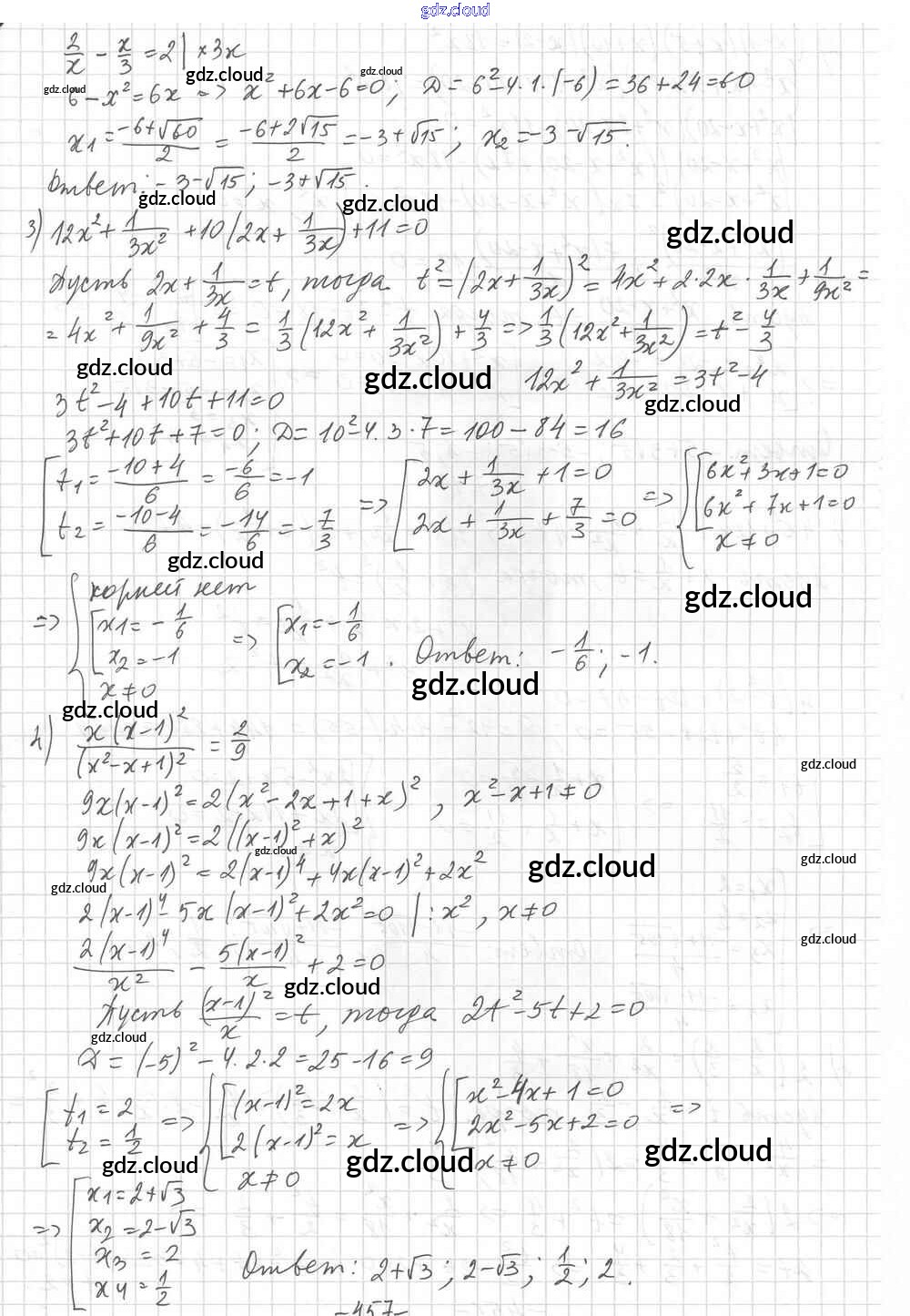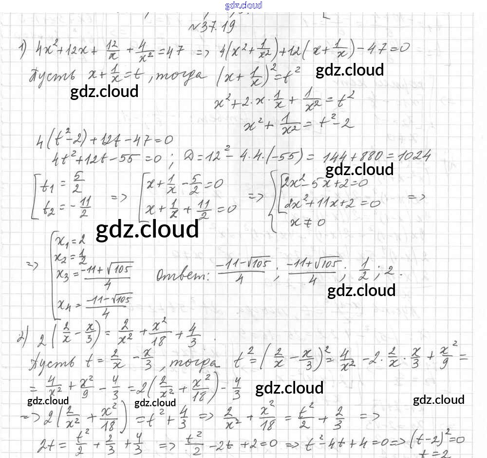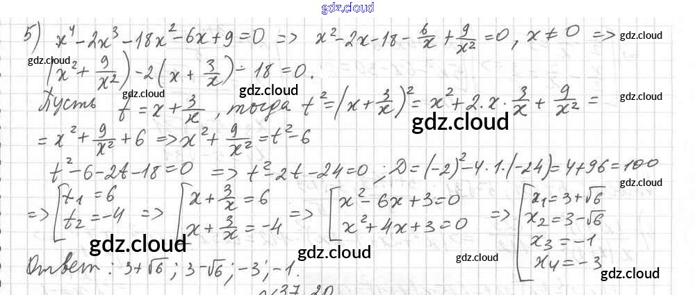 §37. Решение уравнений методом замены переменной Ответы к Главе 6. Квадратные уравнения по Алгебре 8 класс Учебник Мерзляк Алгоритм успеха Углубленный уровень Вентана-граф