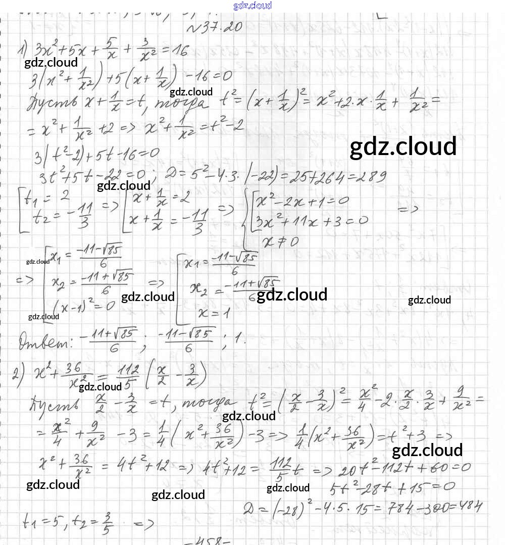 §37. Решение уравнений методом замены переменной Ответы к Главе 6. Квадратные уравнения по Алгебре 8 класс Учебник Мерзляк Алгоритм успеха Углубленный уровень Вентана-граф