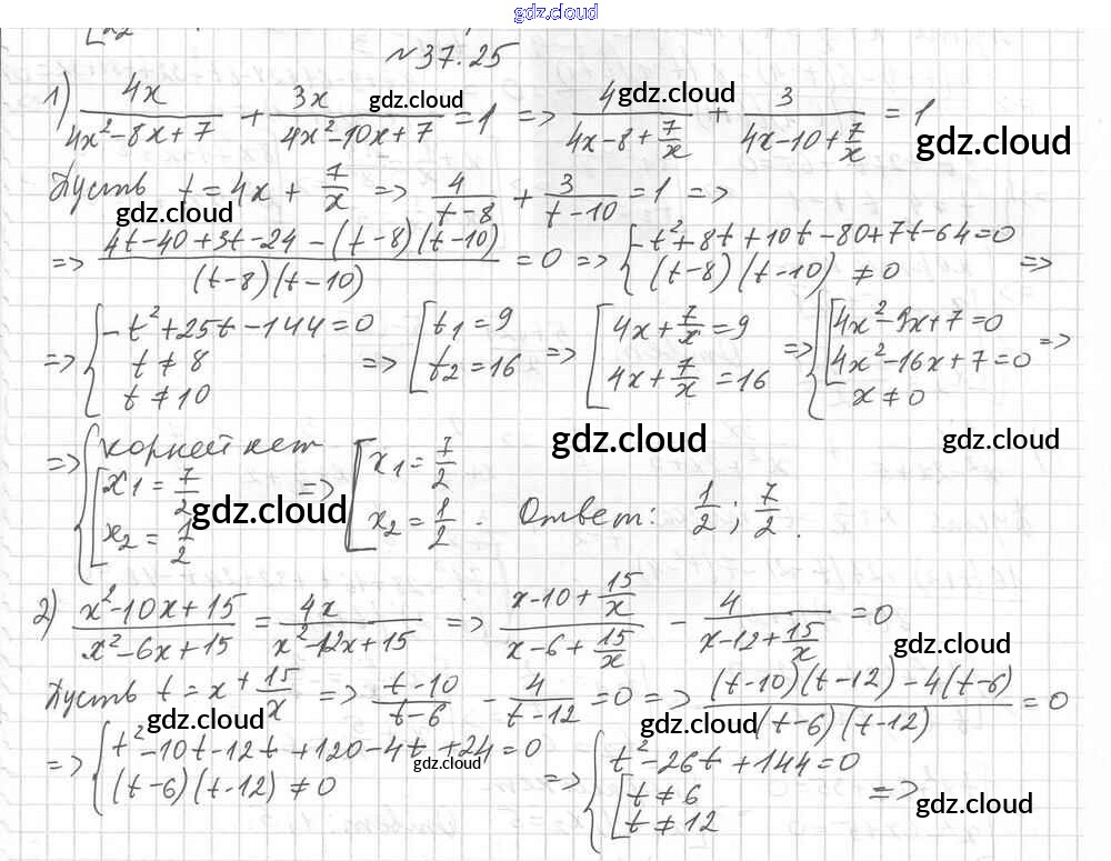 §37. Решение уравнений методом замены переменной Ответы к Главе 6. Квадратные уравнения по Алгебре 8 класс Учебник Мерзляк Алгоритм успеха Углубленный уровень Вентана-граф