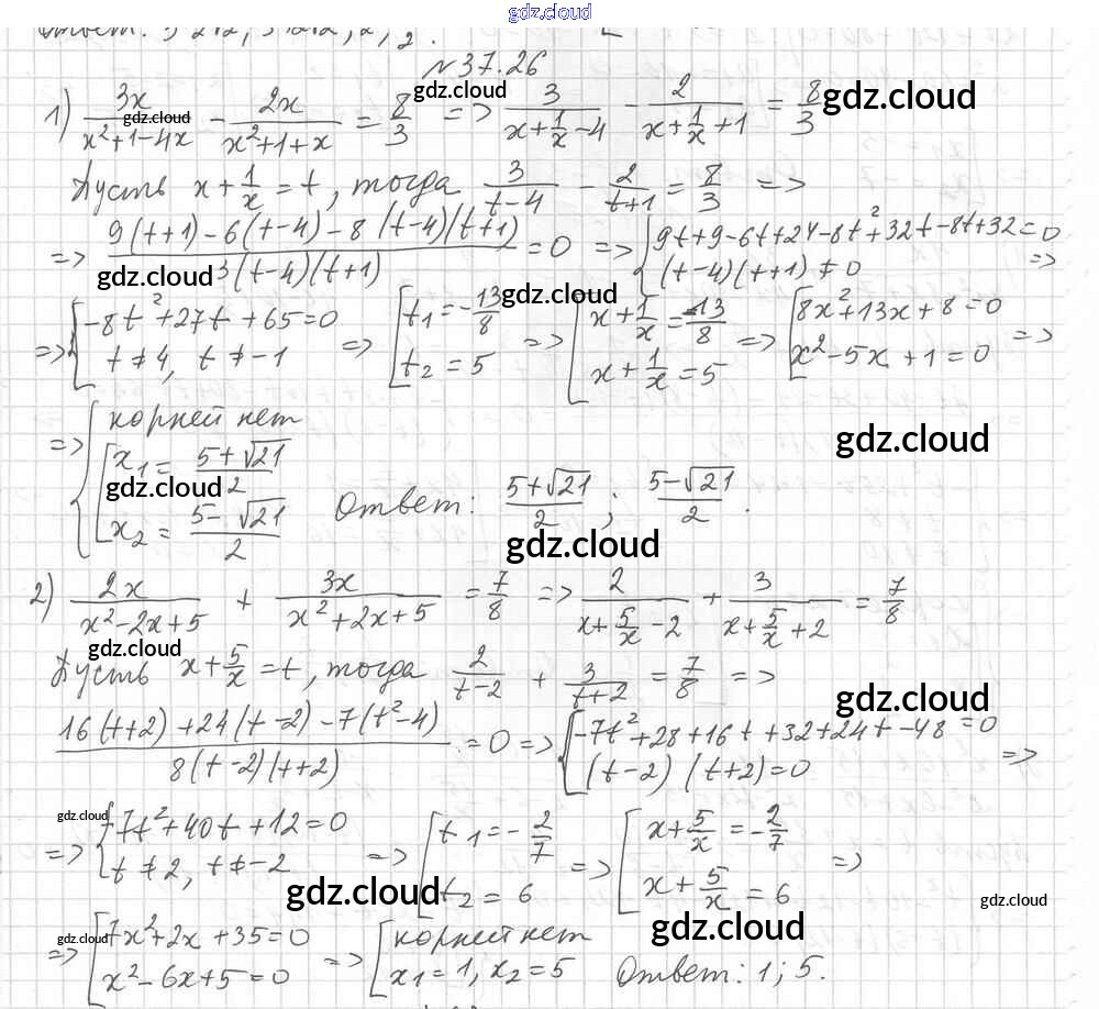 §37. Решение уравнений методом замены переменной Ответы к Главе 6. Квадратные уравнения по Алгебре 8 класс Учебник Мерзляк Алгоритм успеха Углубленный уровень Вентана-граф