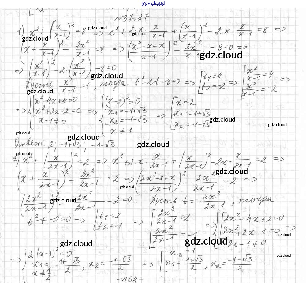 §37. Решение уравнений методом замены переменной Ответы к Главе 6. Квадратные уравнения по Алгебре 8 класс Учебник Мерзляк Алгоритм успеха Углубленный уровень Вентана-граф