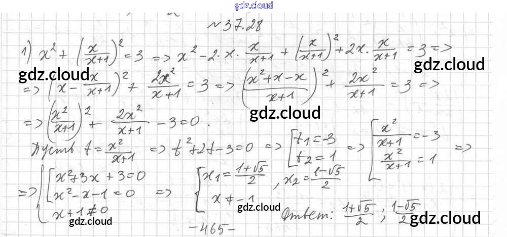 §37. Решение уравнений методом замены переменной Ответы к Главе 6. Квадратные уравнения по Алгебре 8 класс Учебник Мерзляк Алгоритм успеха Углубленный уровень Вентана-граф