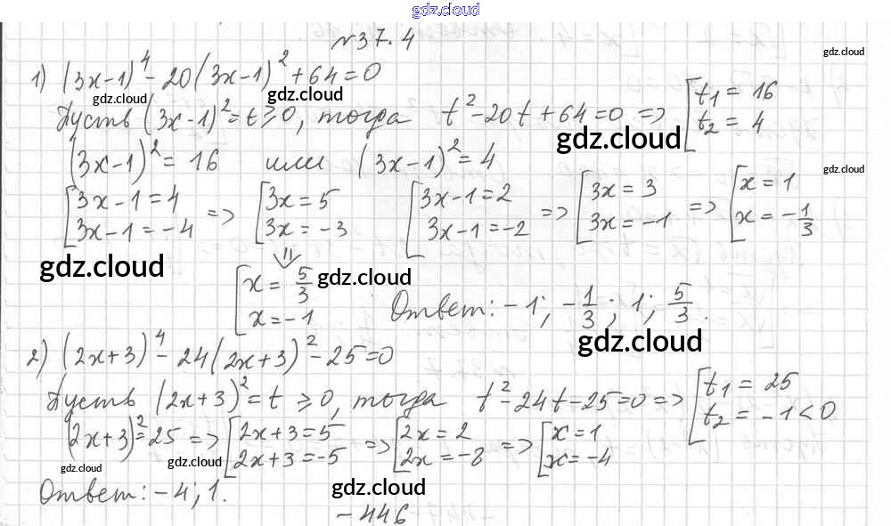 §37. Решение уравнений методом замены переменной Ответы к Главе 6. Квадратные уравнения по Алгебре 8 класс Учебник Мерзляк Алгоритм успеха Углубленный уровень Вентана-граф