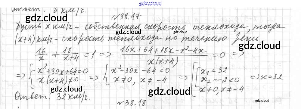 §38. Рациональные уравнения как математические модели реальных ситуаций Ответы к Главе 6. Квадратные уравнения по Алгебре 8 класс Учебник Мерзляк Алгоритм успеха Углубленный уровень Вентана-граф
