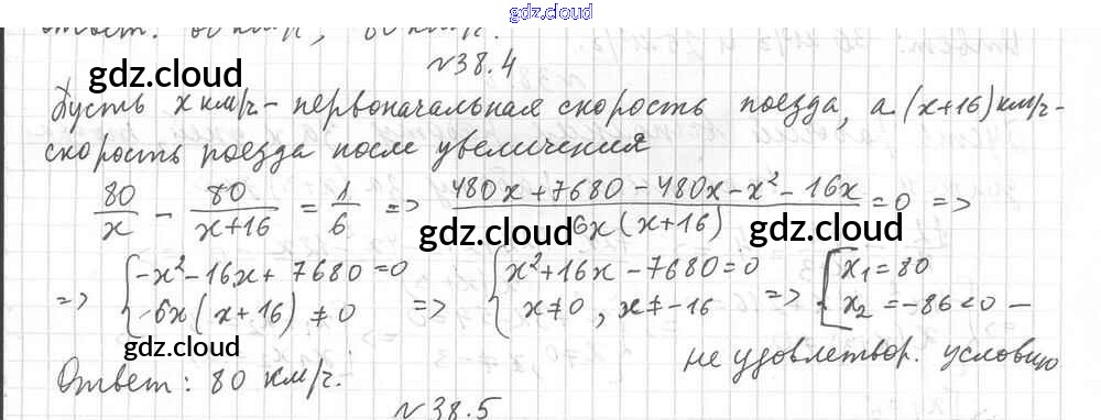 §38. Рациональные уравнения как математические модели реальных ситуаций Ответы к Главе 6. Квадратные уравнения по Алгебре 8 класс Учебник Мерзляк Алгоритм успеха Углубленный уровень Вентана-граф