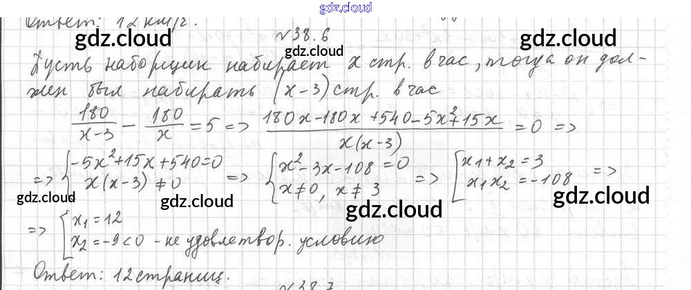§38. Рациональные уравнения как математические модели реальных ситуаций Ответы к Главе 6. Квадратные уравнения по Алгебре 8 класс Учебник Мерзляк Алгоритм успеха Углубленный уровень Вентана-граф
