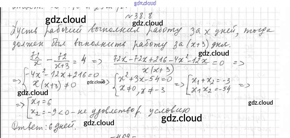 §38. Рациональные уравнения как математические модели реальных ситуаций Ответы к Главе 6. Квадратные уравнения по Алгебре 8 класс Учебник Мерзляк Алгоритм успеха Углубленный уровень Вентана-граф