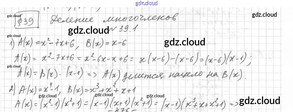 §39. Деление многочленов Ответы к Главе 6. Квадратные уравнения по Алгебре 8 класс Учебник Мерзляк Алгоритм успеха Углубленный уровень Вентана-граф