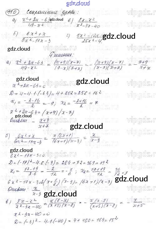 Ответ на задание 110 Задачник Алгебра за 8 (восьмой) класс Мордкович УМК Углубленный уровень 2016 Часть 1, 2