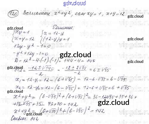 Ответ на задание 120 Задачник Алгебра за 8 (восьмой) класс Мордкович УМК Углубленный уровень 2016 Часть 1, 2