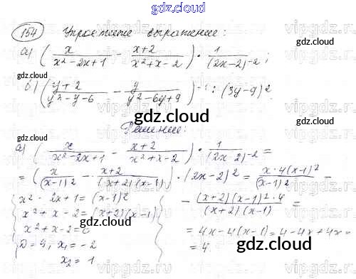 Ответ на задание 154 Задачник Алгебра за 8 (восьмой) класс Мордкович УМК Углубленный уровень 2016 Часть 1, 2