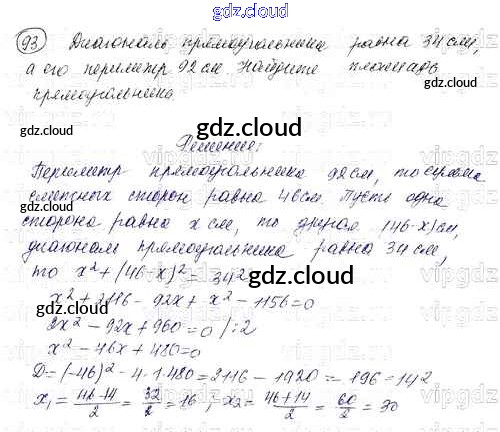 Ответ на задание 93 Задачник Алгебра за 8 (восьмой) класс Мордкович УМК Углубленный уровень 2016 Часть 1, 2