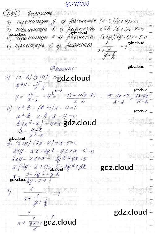 Ответ на задание 34 Задачник Алгебра за 8 (восьмой) класс Мордкович УМК Углубленный уровень 2016 Часть 1, 2 ФГОС онлайн и без номера телефона.