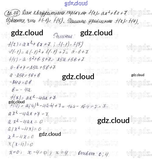 Ответ на задание 39 Задачник Алгебра за 8 (восьмой) класс Мордкович УМК Углубленный уровень 2016 Часть 1, 2