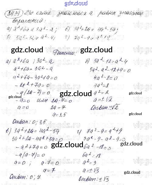 Ответ на задание 39 Задачник Алгебра за 8 (восьмой) класс Мордкович УМК Углубленный уровень 2016 Часть 1, 2