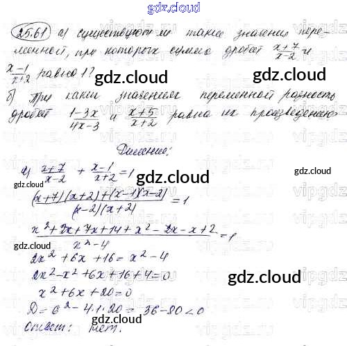 Ответ на задание 61 Задачник Алгебра за 8 (восьмой) класс Мордкович УМК Углубленный уровень 2016 Часть 1, 2