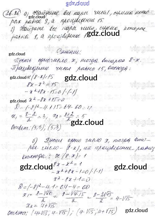 Ответы к Параграфу 26 по Алгебре 8 класс Задачник Мордкович УМК Углубленный уровень Часть 1, 2 Мнемозина