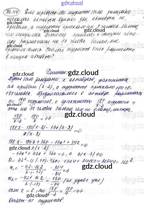 Ответ на задание 44 Задачник Алгебра за 8 (восьмой) класс Мордкович УМК Углубленный уровень 2016 Часть 1, 2
