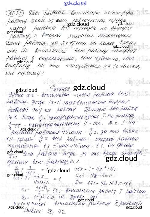 Ответ на задание 57 Задачник Алгебра за 8 (восьмой) класс Мордкович УМК Углубленный уровень 2016 Часть 1, 2