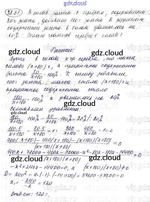 Ответ на задание 61 Задачник Алгебра за 8 (восьмой) класс Мордкович УМК Углубленный уровень 2016 Часть 1, 2