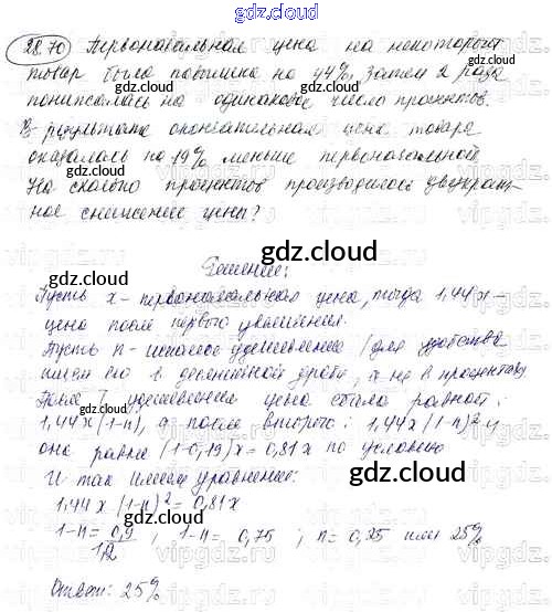Ответ на задание 70 Задачник Алгебра за 8 (восьмой) класс Мордкович УМК Углубленный уровень 2016 Часть 1, 2