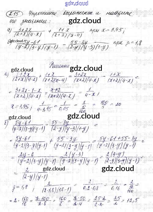 Ответ на задание 15 Задачник Алгебра за 8 (восьмой) класс Мордкович УМК Углубленный уровень 2016 Часть 1, 2 ФГОС онлайн и без номера телефона.