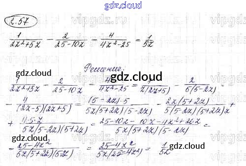Ответ на задание 57 Задачник Алгебра за 8 (восьмой) класс Мордкович УМК Углубленный уровень 2016 Часть 1, 2 ФГОС онлайн и без номера телефона.