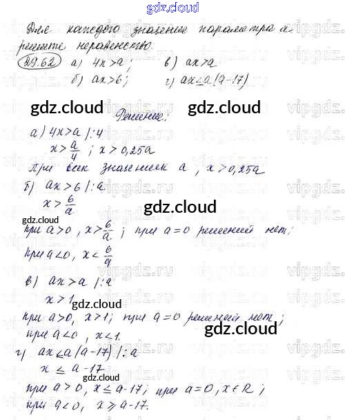Ответ на задание 62 Задачник Алгебра за 8 (восьмой) класс Мордкович УМК Углубленный уровень 2016 Часть 1, 2
