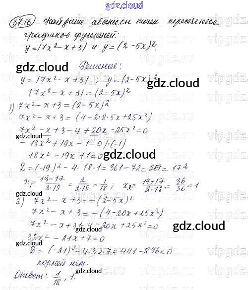 Ответ на задание 16 Задачник Алгебра за 8 (восьмой) класс Мордкович УМК Углубленный уровень 2016 Часть 1, 2