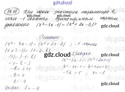 Ответ на задание 38 Задачник Алгебра за 8 (восьмой) класс Мордкович УМК Углубленный уровень 2016 Часть 1, 2