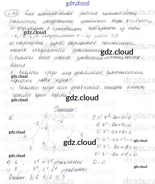 Ответ на задание 31 Задачник Алгебра за 8 (восьмой) класс Мордкович УМК Углубленный уровень 2016 Часть 1, 2 ФГОС онлайн и без номера телефона.