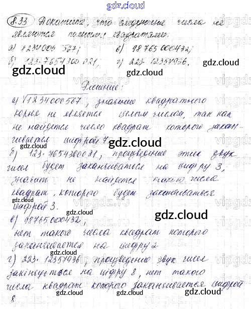 Ответ на задание 33 Задачник Алгебра за 8 (восьмой) класс Мордкович УМК Углубленный уровень 2016 Часть 1, 2 ФГОС онлайн и без номера телефона.
