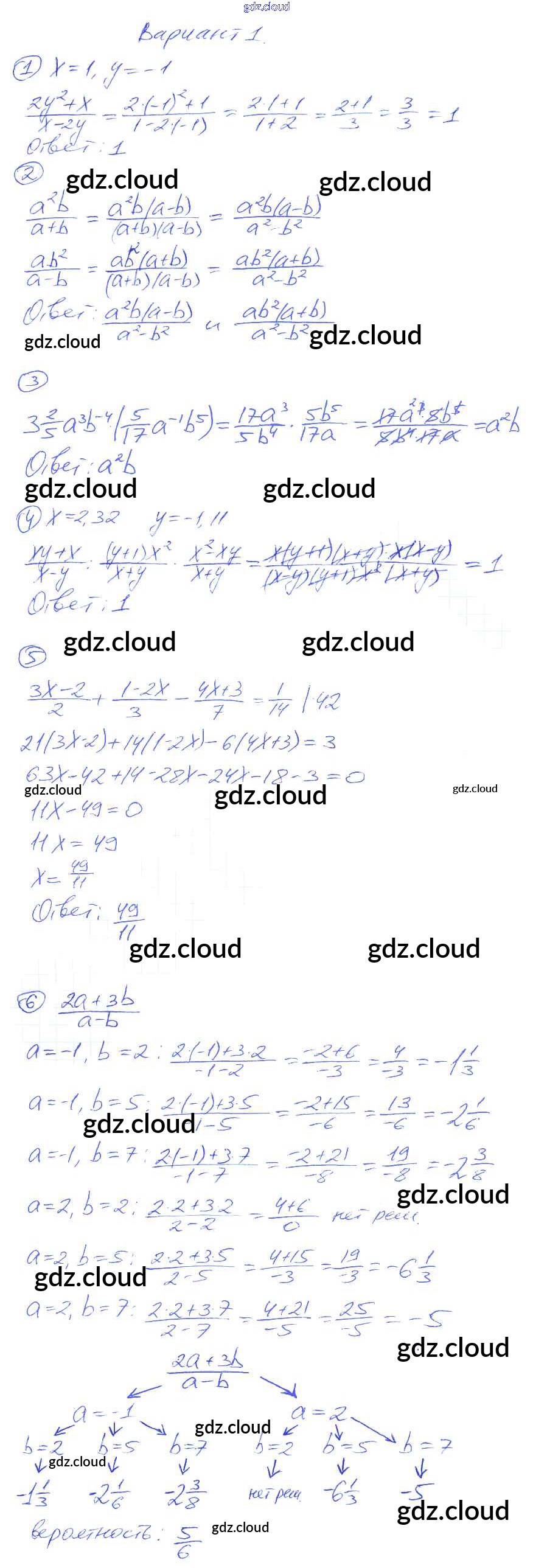 КР-1. Алгебраические дроби Ответы к Контрольным работам по Алгебре 8 класс Дидактические материалы Попов УМК Экзамен