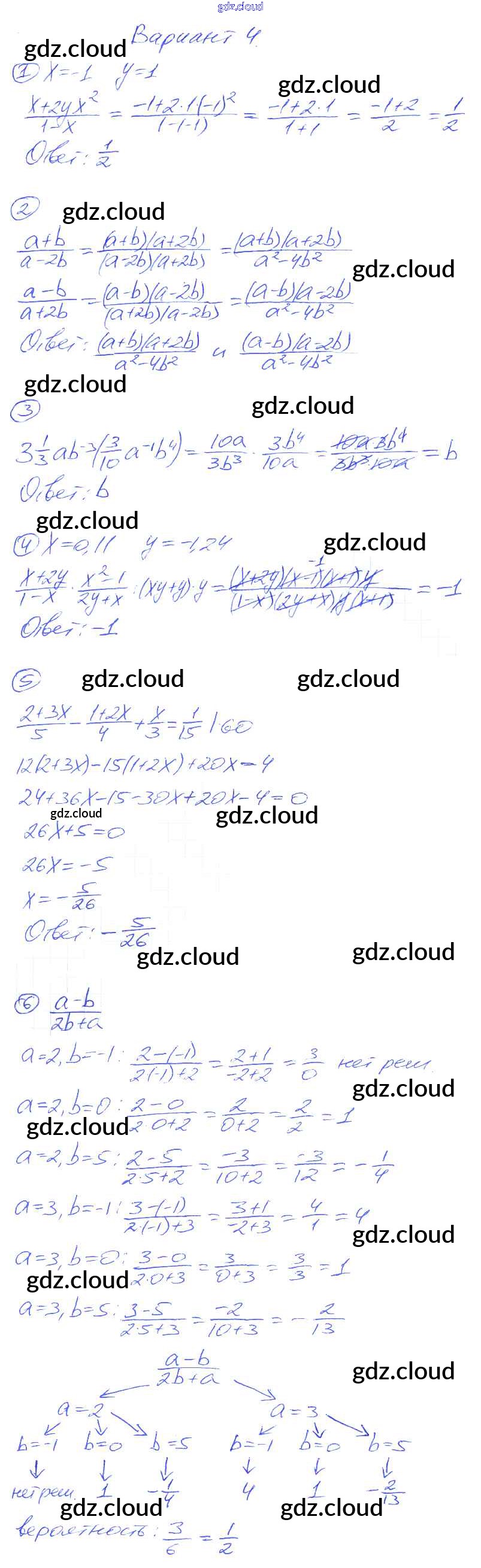 Ответ на задание вариант-4 Дидактические материалы Алгебра за 8 (восьмой) класс Попов УМК 2014