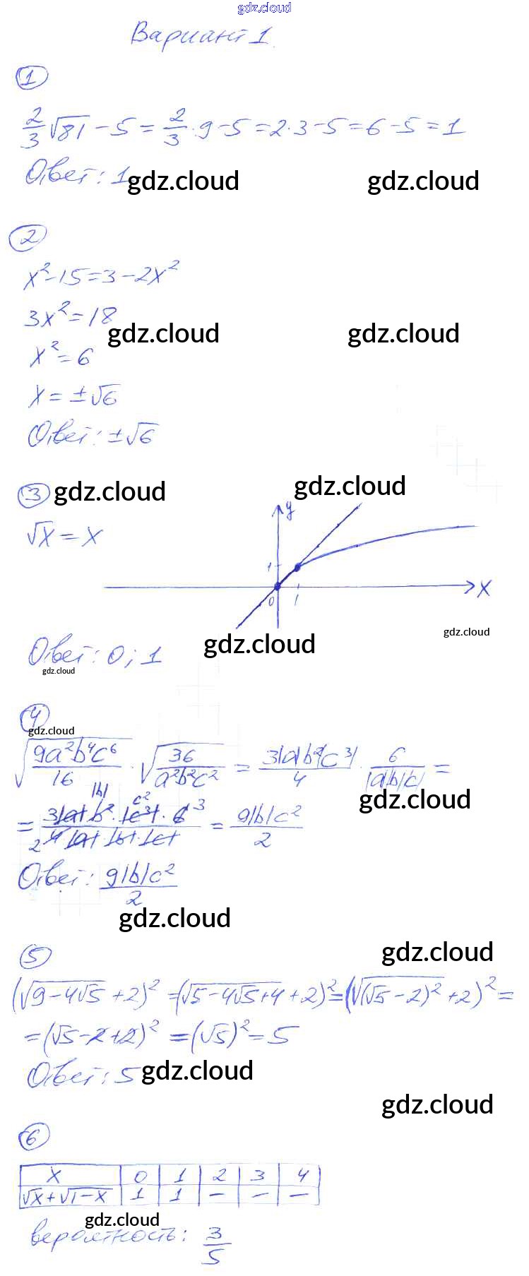 КР-2. Функция y = √x. Свойства квадратного корня Ответы к Контрольным работам по Алгебре 8 класс Дидактические материалы Попов УМК Экзамен