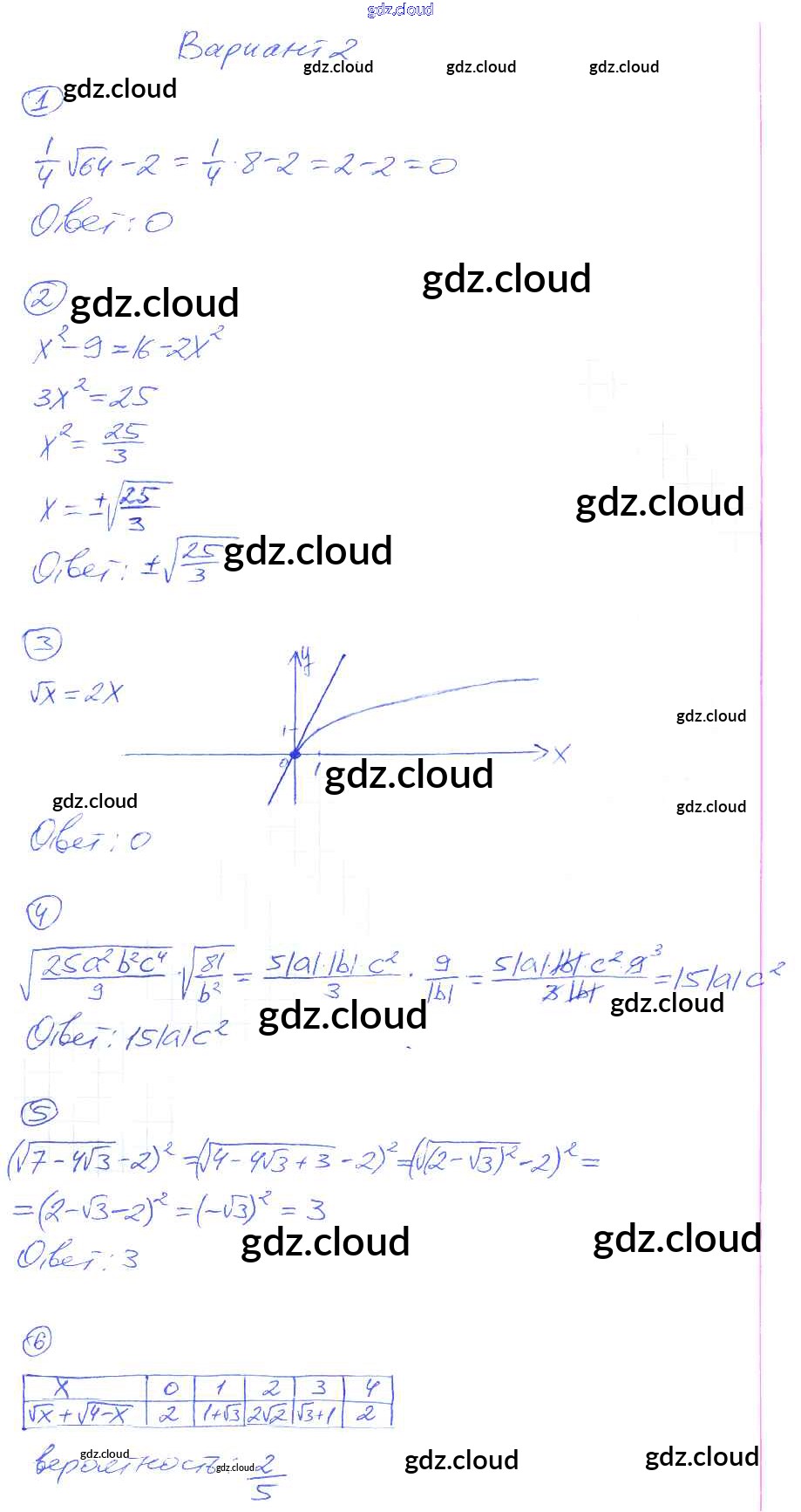 КР-2. Функция y = √x. Свойства квадратного корня Ответы к Контрольным работам по Алгебре 8 класс Дидактические материалы Попов УМК Экзамен