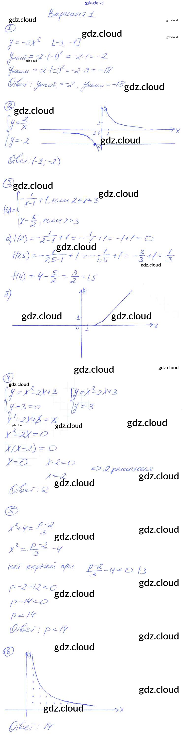 КР-3. Квадратичная функция. Функция y = k:x Ответы к Контрольным работам по Алгебре 8 класс Дидактические материалы Попов УМК Экзамен