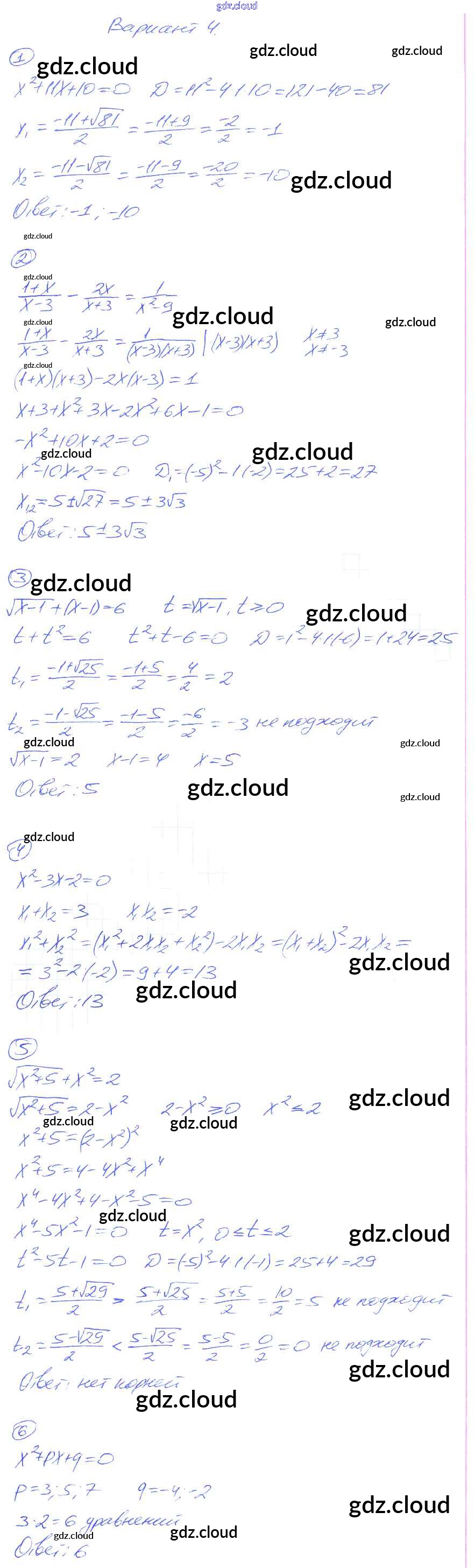 КР-4. Квадратные уравнения Ответы к Контрольным работам по Алгебре 8 класс Дидактические материалы Попов УМК Экзамен