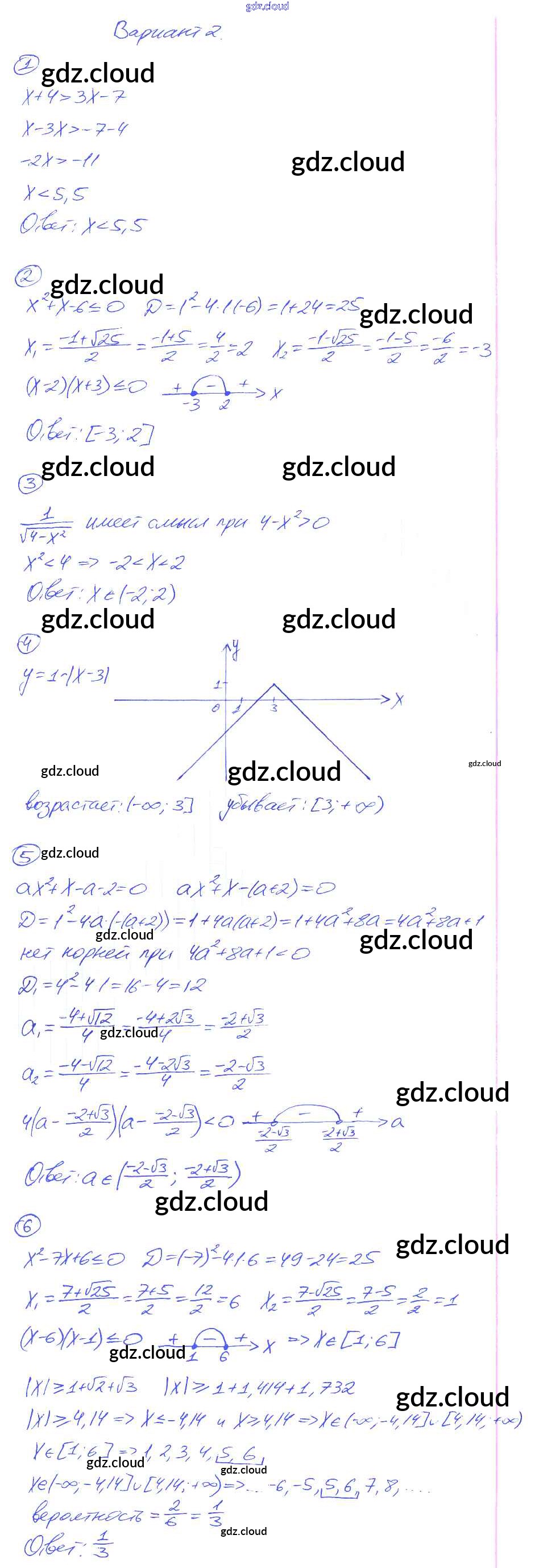 КР-5. Неравенства Ответы к Контрольным работам по Алгебре 8 класс Дидактические материалы Попов УМК Экзамен